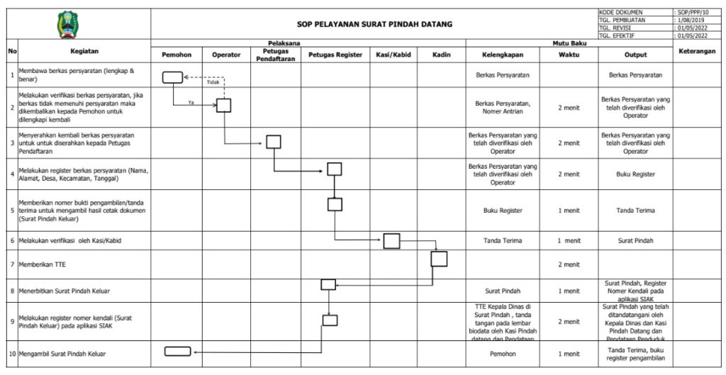 - Memberikan nomer bukti pengambilan/tanda terima untuk mengambil hasil cetak dokumen (Surat Pindah Keluar)