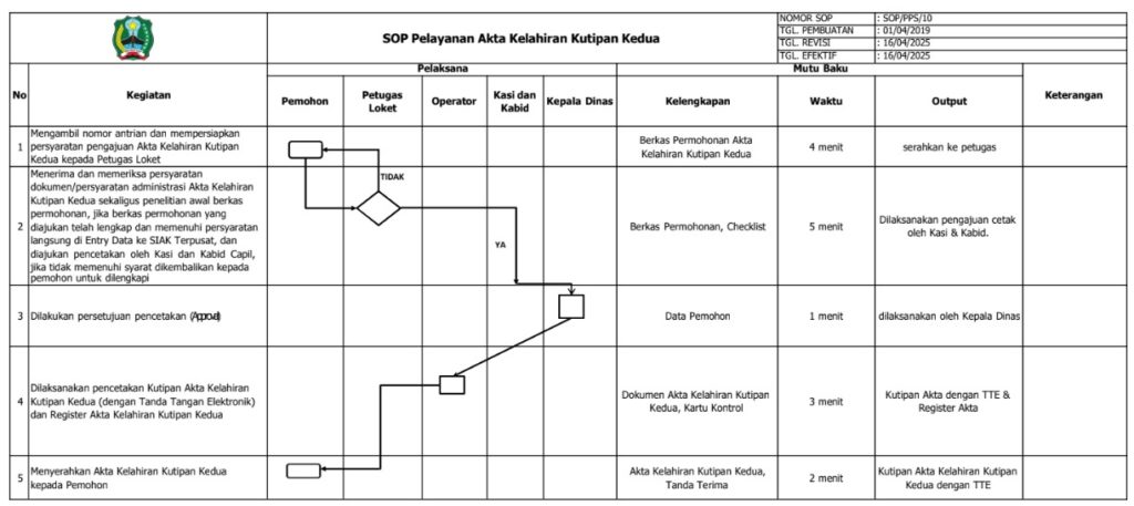 - Dilaksanakan pencetakan Kutipan Akta Kelahiran (dengan Tanda Tangan Elektronik), Register Akta Kelahiran, dan Surat Keputusan bagi Akta Kelahiran yang terlambat pelaporannya