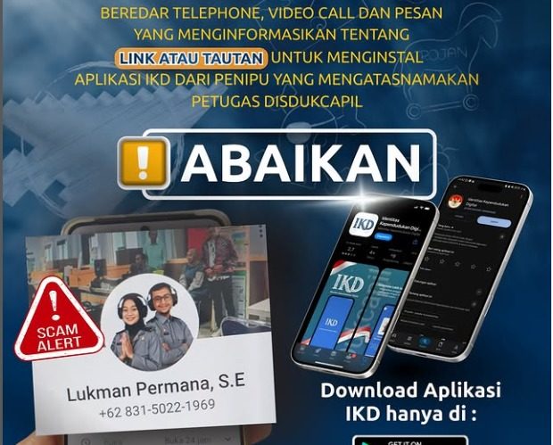 📱 Kali ini penipu mencoba menghubungi masyarakat melaui pesan teks, telephone, atau bahkan video call. Penipu akan menginformasikan sebuah link untuk menginstal aplikasi IKD.